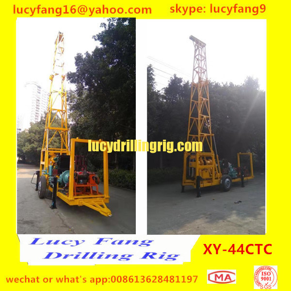 XY-44CTC drilling rig is a towing core drilling rig. It is a core drilling equipment based on diamod and carbide tungsten bit drilling, which is mainly suitable for geology, metallurgy, coal, hydrological, engineering and other industries, it can also be used for engineering geological exploration, shallow oil and gas exploration, mine tunnel ventilation, drainage, hydrological well drilling and large diameter foundation pile construction. Excellent product quality,  hydrological drilling, hydropower engineering, construction engineering and other construction departments.